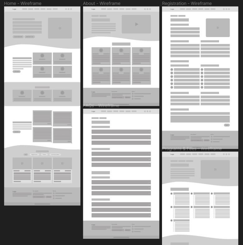 After deciding about the features, pages, site map, and information the website should have, I started by creating low-fidelity wireframes to roughly visualize the new look of the website.